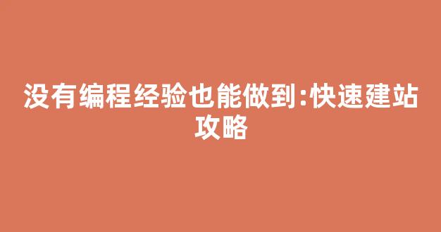 虽然您可能没有编程经验,但是使用现代的网站建设平台,您仍然可以快速建立一个专业水平的网站。选择合适的平台、注册域名和购买主机、选择适当的模板和插件、优化您的内容以及定期更新和维护您的网站是成功建站的关键步骤。遵循这些简单的步骤,您就能够拥有一个令人印象深刻的网站,而无需编程知识。