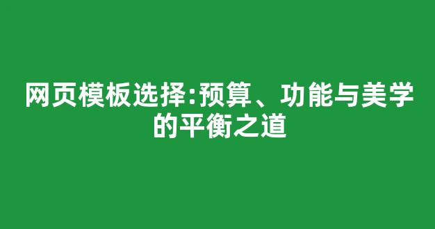 在当今数字化时代,拥有一个令人印象深刻的网站对于企业的成功至关重要。然而,在选择网页模板时,预算、功能和美学之间的平衡成为了一个关键问题。本文将深入探讨如何在这三者之间找到最佳平衡点,以确保您的网站在各个方面都具备竞争力。