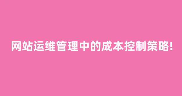 在竞争激烈的网络环境中,有效控制网站运维成本至关重要。通过定期性能优化、应用自动化运维工具和合理利用云端资源等策略,可以有效降低网站运维的成本,提升企业的竞争力和盈利能力。